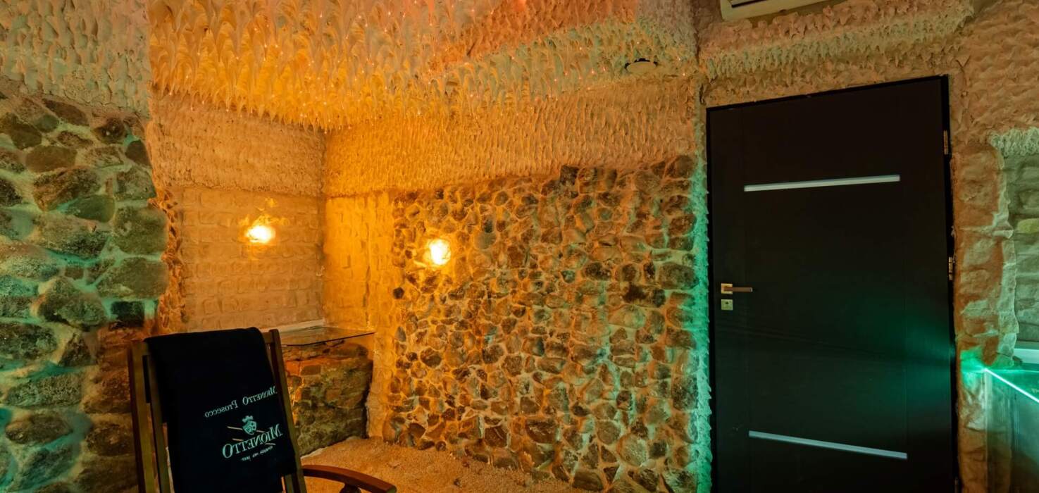 - Jest też grota solna, czyli pomieszczenie stylizowane na mikroklimat nadmorski, z obecnością soli i odpowiedniej wentylacji, co sprzyja relaksowi dróg oddechowych.