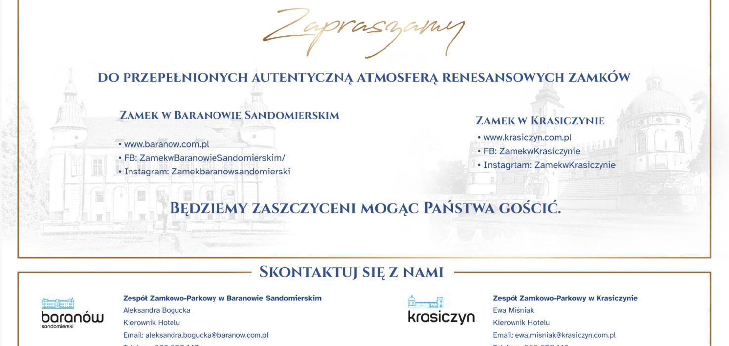 Do Zespołów Zamkowo-Parkowych w Baranowie Sandomierskim i Krasiczynie, TO WIĘCEJ NIŻ PREZENT!
