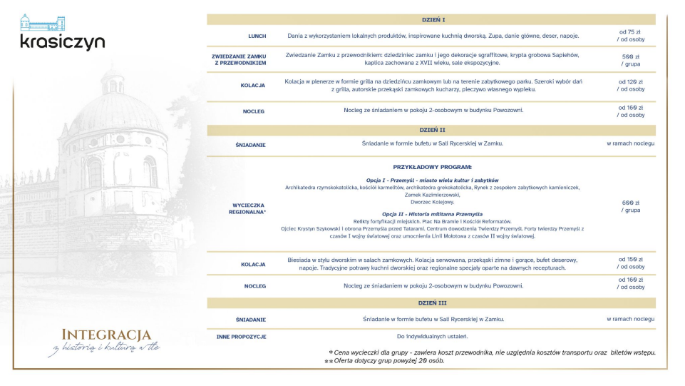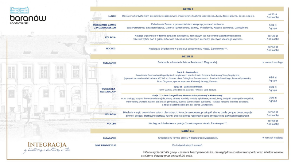 z zakresu historii, kultury i sztuki przy założeniu, że nasza oferta oparta jest na polskiej gościnności,
