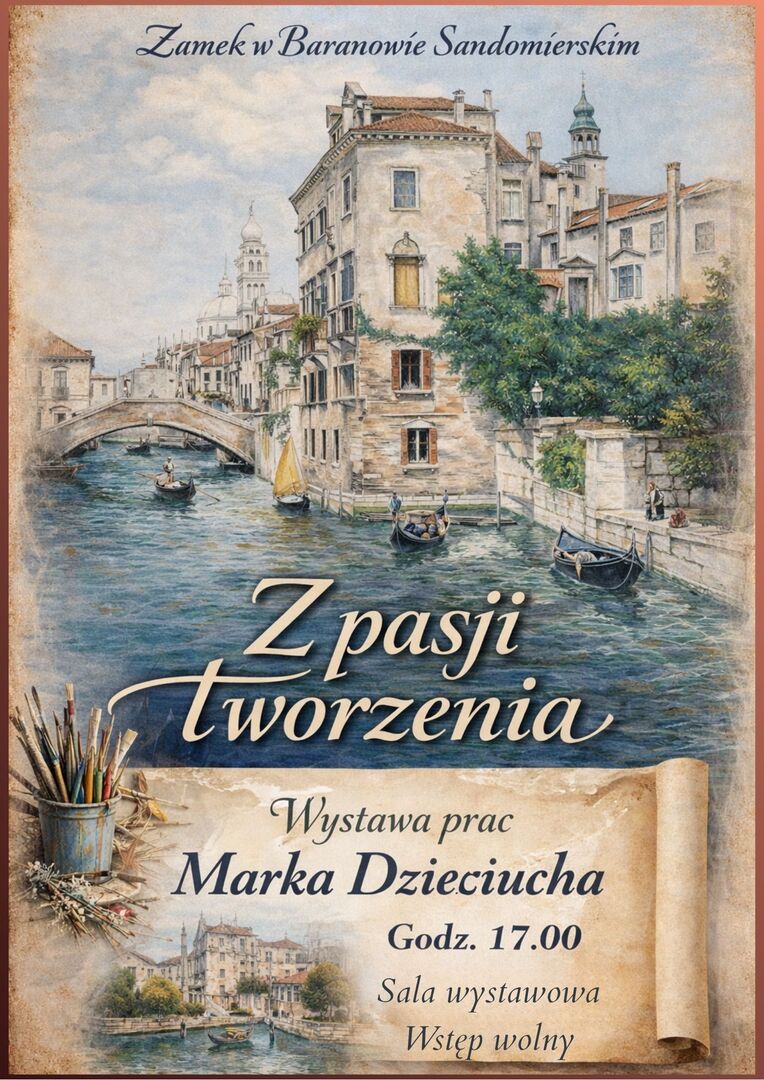 Wystawa zatytułowana „Z pasji tworzenia” to spotkanie z twórczością pełną detalu, harmonii i subtelnej nostalgii. Obrazy Marka Dzieciucha przenoszą widza w miejsca nasycone historią i klimatem – od urokliwych miejskich zakątków po malownicze widoki inspirowane architekturą. Artysta, znany z precyzji i zamiłowania do realistycznego malarstwa, w swoich pracach łączy klasyczny warsztat z osobistą interpretacją przestrzeni i światła.